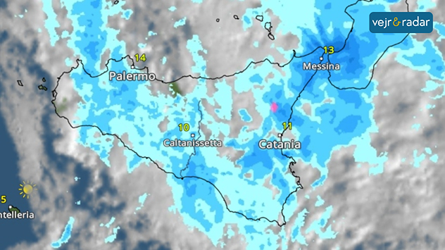 VejrRadar: Kraftige regnskyl passerer over Sicilien.