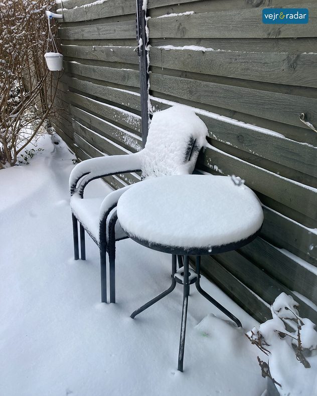 Sådan så det ud, da vi fik årets første sne. Helt så meget får vi ikke i denne omgang. Foto: Tina Magnussen / brugerfoto