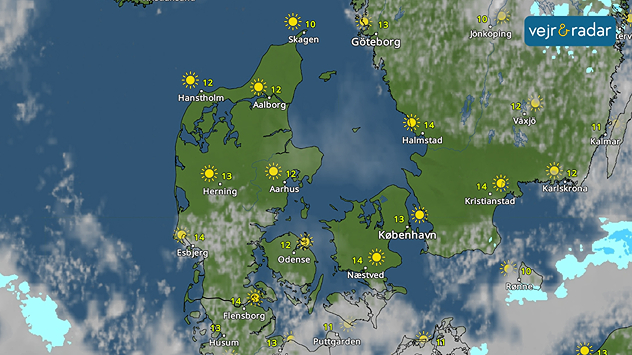 Fredag bliver mest skyet med lidt regn især i Jylland, men efterhånden klarer det op fra nordvest og temperaturen ligger på 7-10 grader.